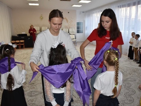 Они повязали ребятам галстуки, символизирующие их вступление в «Орлята России», и вручили каждому «Орлёнку» именное Удостоверение.