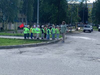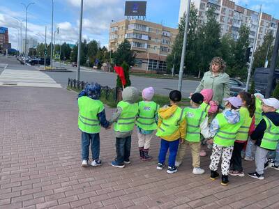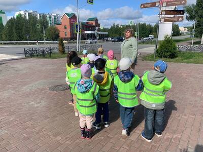 Ребята старшей группы отряда ЮИД «Подсолнушек» отправились на увлекательную экскурсию по 1 микрорайону к одному из самых оживлённых перекрёстков.