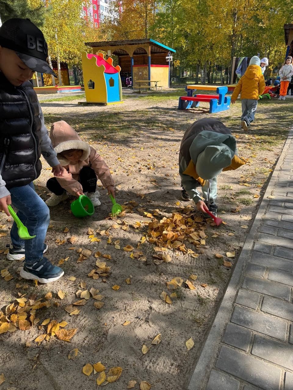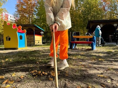 Ребята с энтузиазмом взялись за дело: вооружились инвентарем, собрали мусор, листья и веточки, дружно навели порядок на своем участке и на соседних.
