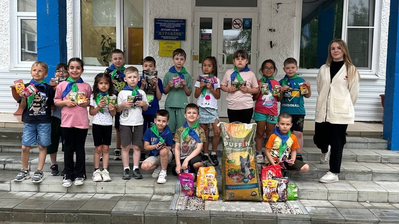 - а мы в свою очередь передали собранный корм в Приют для животных